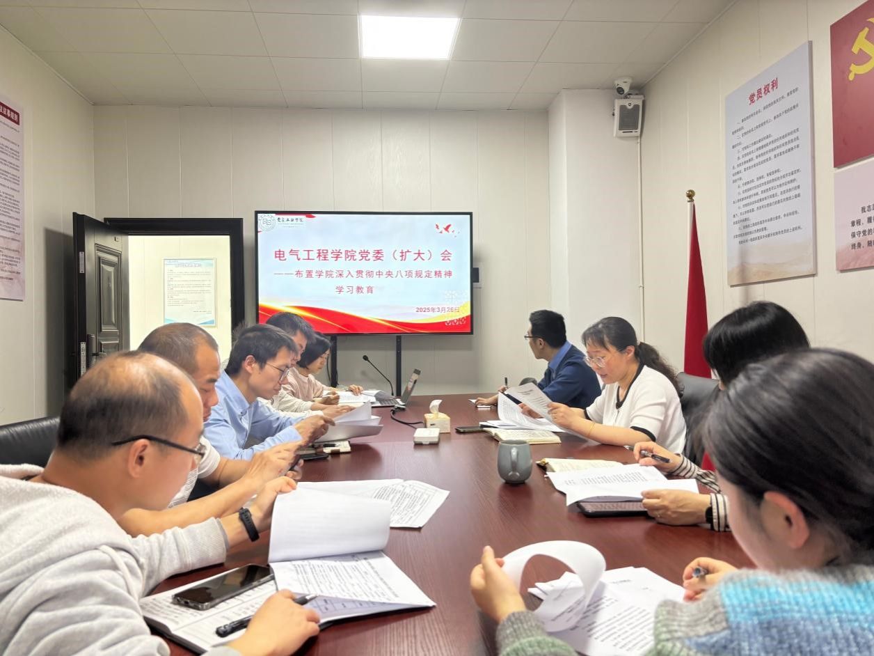 3月26日上午,电气工程学院在C409会议室召开党委扩大会议,对在全院开展深入贯彻中央八项规定精神学习教育进行动员部署。学院党委委员、基层党支部书记和支部委员参加会议并进行集体理论学习,会议由学院党委书记焦晶主持。