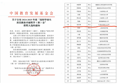 “高校毕业生基层就业卓越奖”于2023年开始评选,作为教育部指导设立的重要奖项,旨在表彰在基层就业并做出突出业绩的普通高校毕业生。此次张洪涛的获奖既是对其个人扎根基层、实干奉献的高度肯定,更是学校践行“立德树人”根本任务、开展就业服务育人的生动体现。