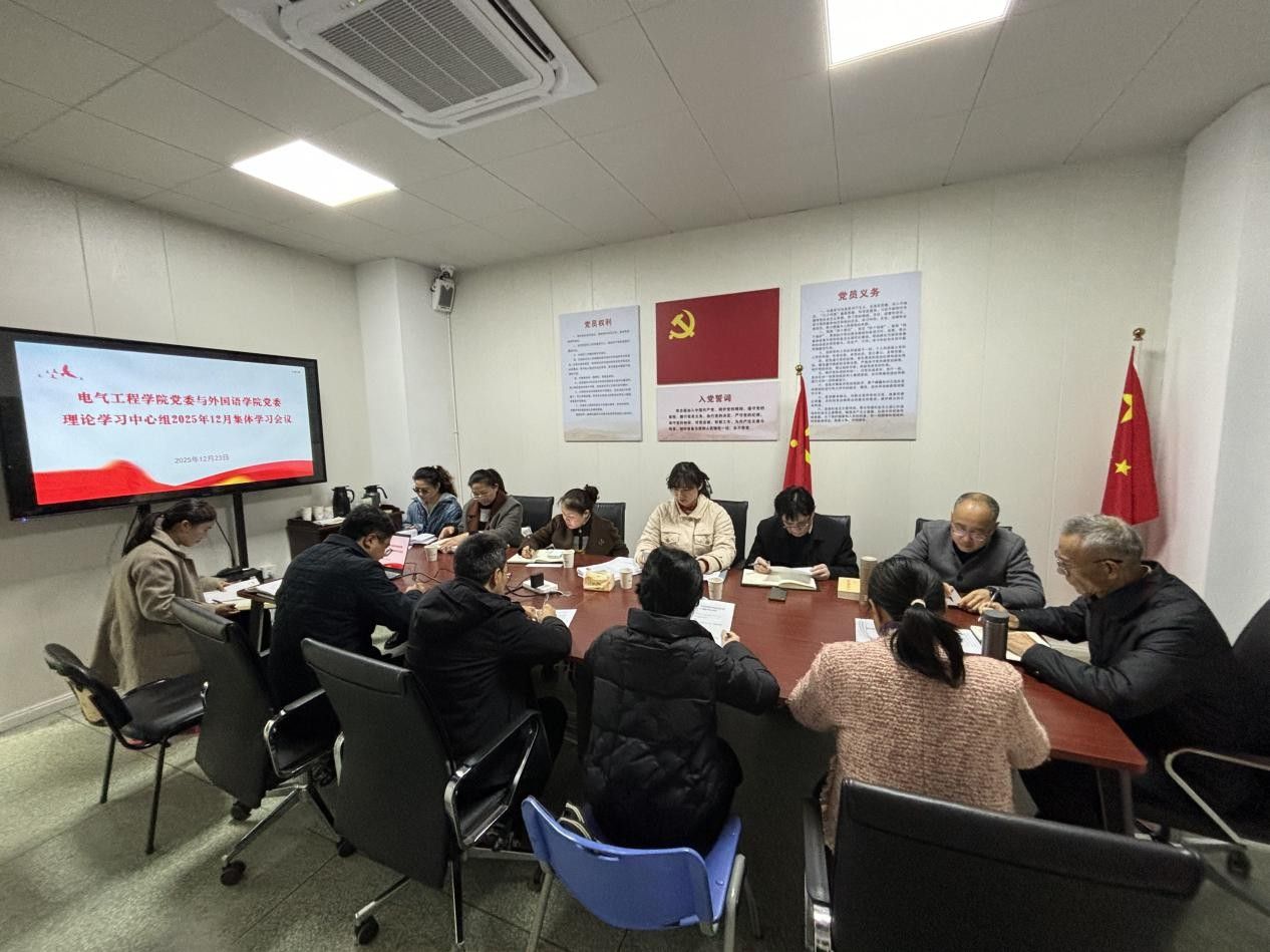 12月23日下午,电气工程学院党委与外国语学院党委在能源电气楼C409开展党委理论学习中心组联学活动,校党委委员、党委宣传部部长洪恩强列席指导,电气工程学院党委和外国语学院党委理论学习中心组成员参加学习。
