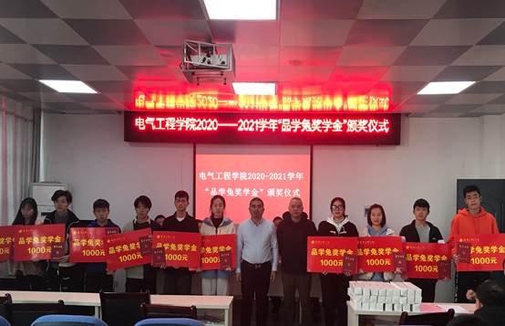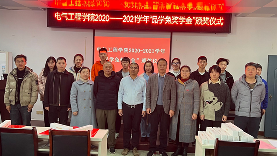 校学生资助管理中心负责人宣读了《关于对2021年电气工程学院“品学兔奖学金”获得者的表彰决定》,电气工程学院党委负责人和南昌品学兔职业技能培训学校校长周正华为10位获奖学子颁发了证书和奖金。