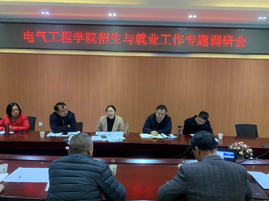 12月1日上午,副校长周敏丹带领招生就业处一行到电气工程学院开展招生就业工作专题调研。学院领导班子、教研室主任、专业负责人、辅导员及毕业班班主任参加座谈。