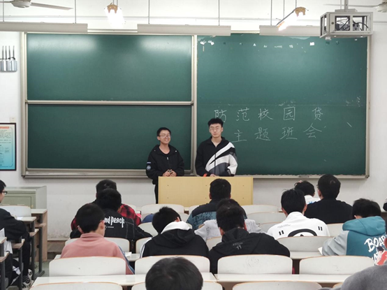 在主题班会上,各班认真学习《关于进一步加强校园贷规范管理工作的通知》(银监发[2017]28号)和《关于进一步规范大学生互联网消费贷款监督管理工作的通知》(银保监发[2021]28号)精神,了解不良校园贷含义、特点、风险和危害,并掌握了应对不良校园贷的措施。所有学生都一致认为此项主题班会非常有意义,承诺要远离不良校园贷。