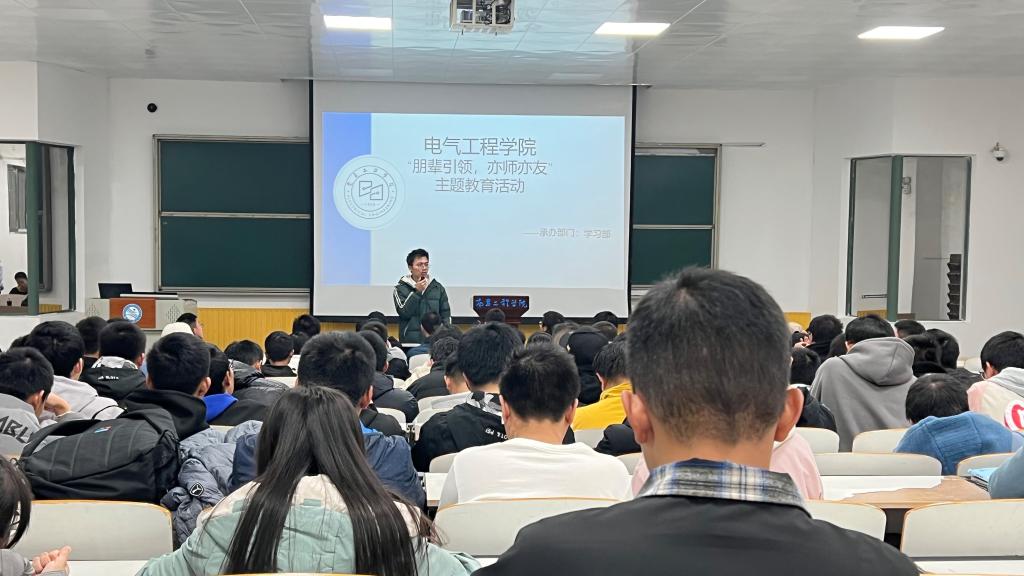 为了引导全院新生正确规划自己的大学学习,树立学习榜样,电气工程学院于2021年12月6日晚在南C205举办“朋辈引领,亦师亦友”主题教育活动。电气工程学院辅导员涂怀谋、国家奖学金获得者、国家励志奖学金获得者等优秀学子代表以及全体2021级新生参加主题教育活动。