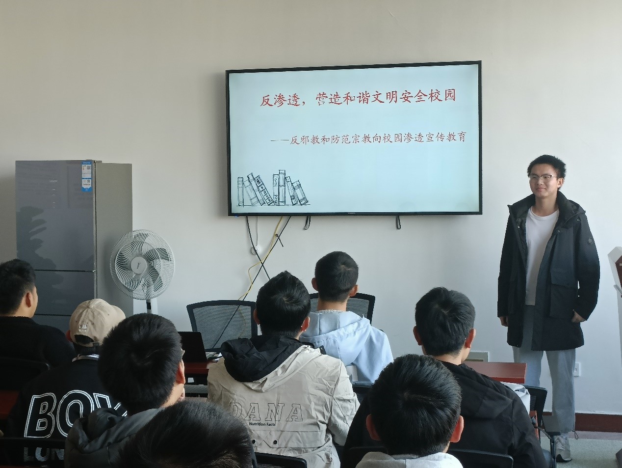 学院召开学生工作研判会统一部署,辅导员、班主任走进班级、走进新时代文明实践中心,与学生近距离交流沟通,带领同学们学习了《中华人民共和国宪法》和《中华人民共和国教育法》等相关法律的规定,再次明确了 “两个不得、六个严禁”要求,要求全体学生积极带头抵御和防范宗教势力向校园渗透,筑牢“防火墙”、织密“防护网”。