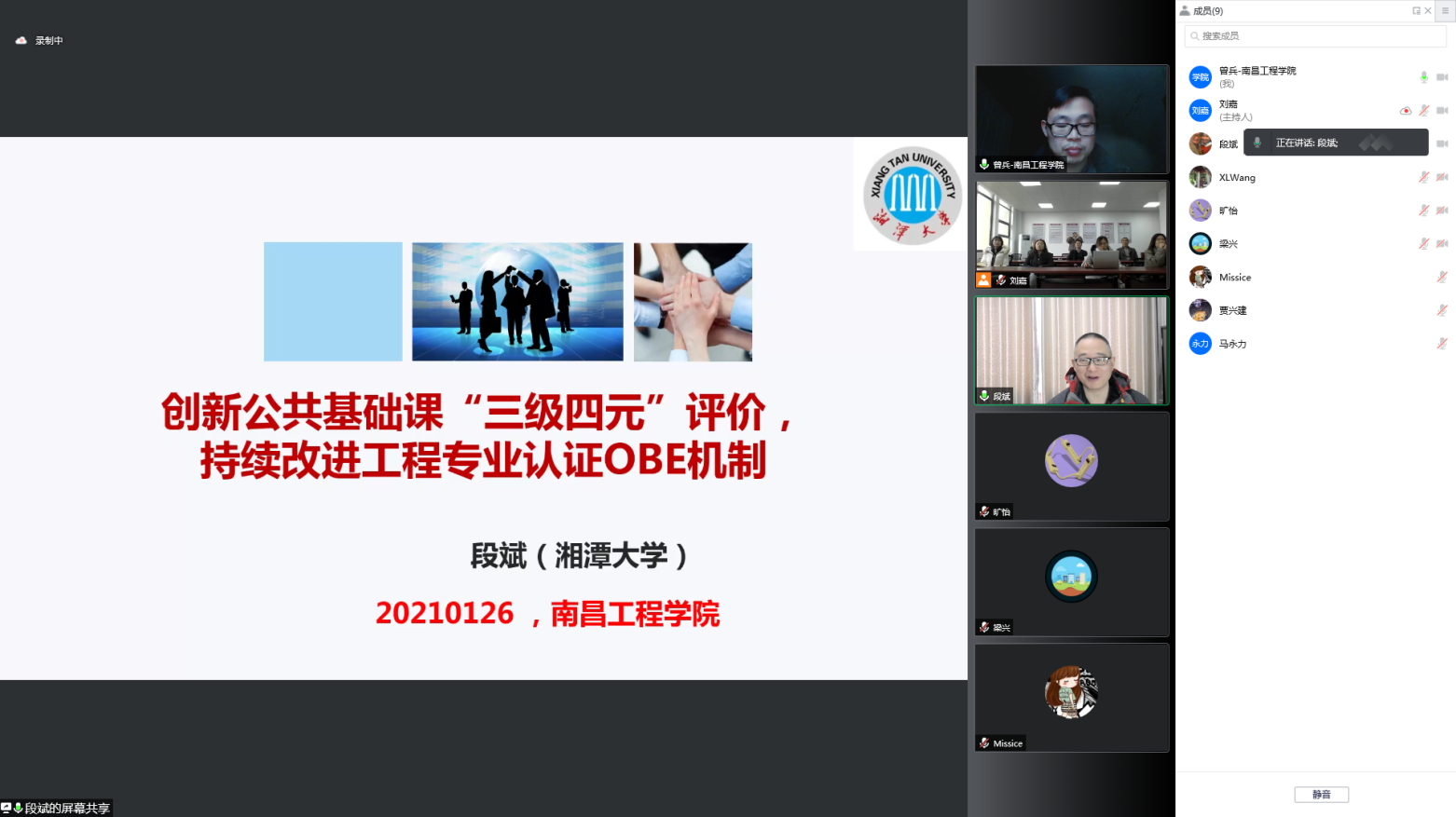 为进一步推动我校工程教育专业认证工作的开展,结合学校工程认证工作推进情况,1月26日,湘潭大学段斌教授应邀做客我校开展“创新公共基础课‘三级四元’评价,持续改进工程认证OBE机制”的专题报告。报告会采用线上线下形式。教务处、教育教学评估中心、各教学单位相关人员参加了报告会。报告会由教务处处长邓承志主持。