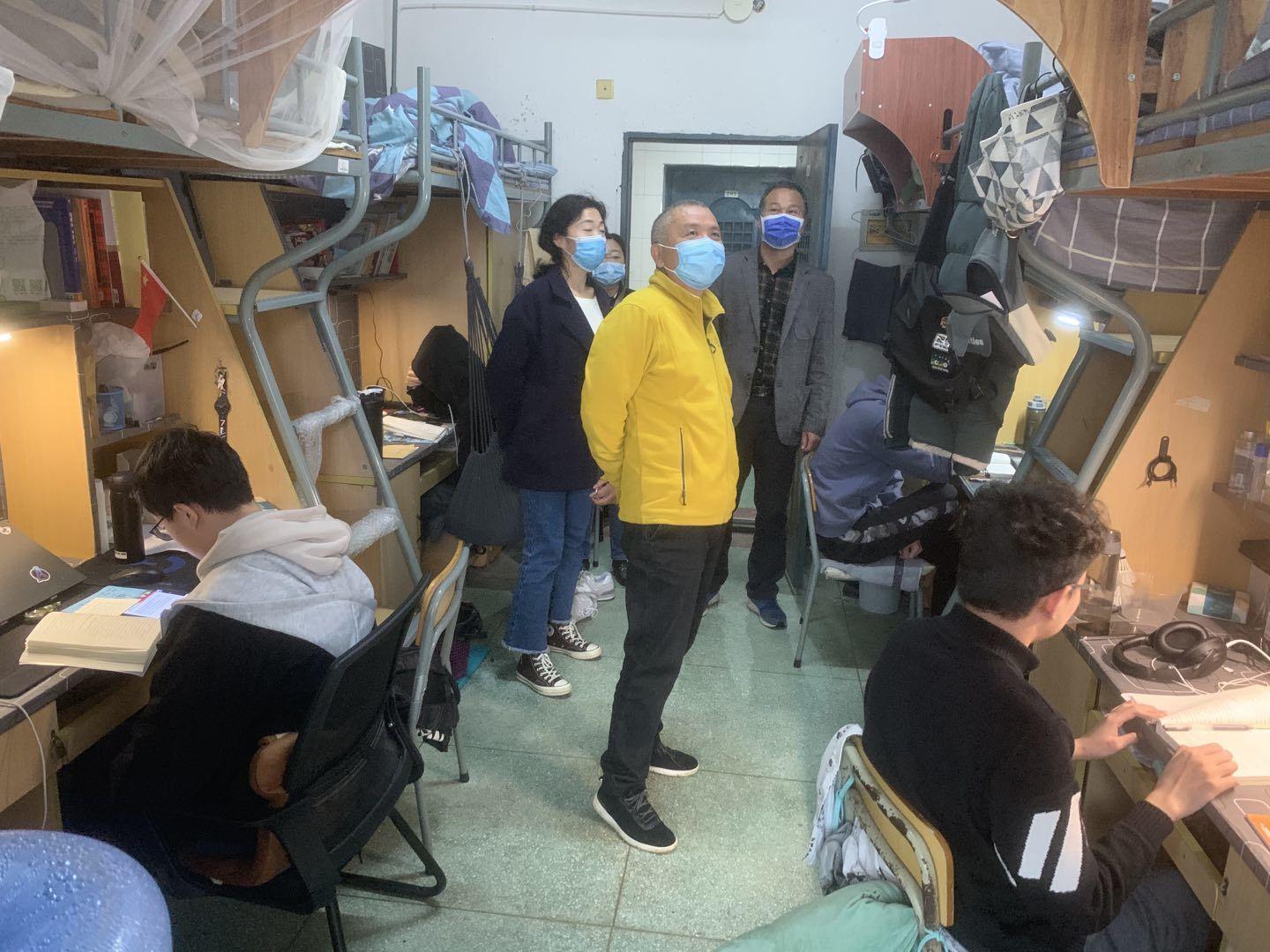 在学生宿舍,学院相关负责人督查了课程出勤情况,利用课间与同学们亲切交谈,详细询问了线上教学软件的使用情况、线上课堂授课效果及互动情况以及线上授课遇到的问题,要求同学们尽快适应线上教学方式。同时,向学生介绍了学校近期疫情防控的措施和要求,叮嘱学生要认真上好每一节课,生活中时刻保持宿舍清洁卫生,保持窗户多通风、勤洗手,同时不聚集、不扎堆,出门坚持戴口罩。最后,鼓励大家要克服疫情带来的诸多不便,叮嘱同学们做好个人健康防护,保持良好生活习惯,齐心协力,共渡疫情。