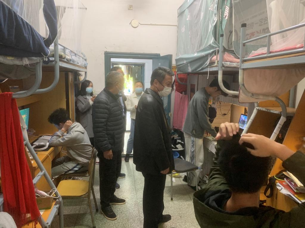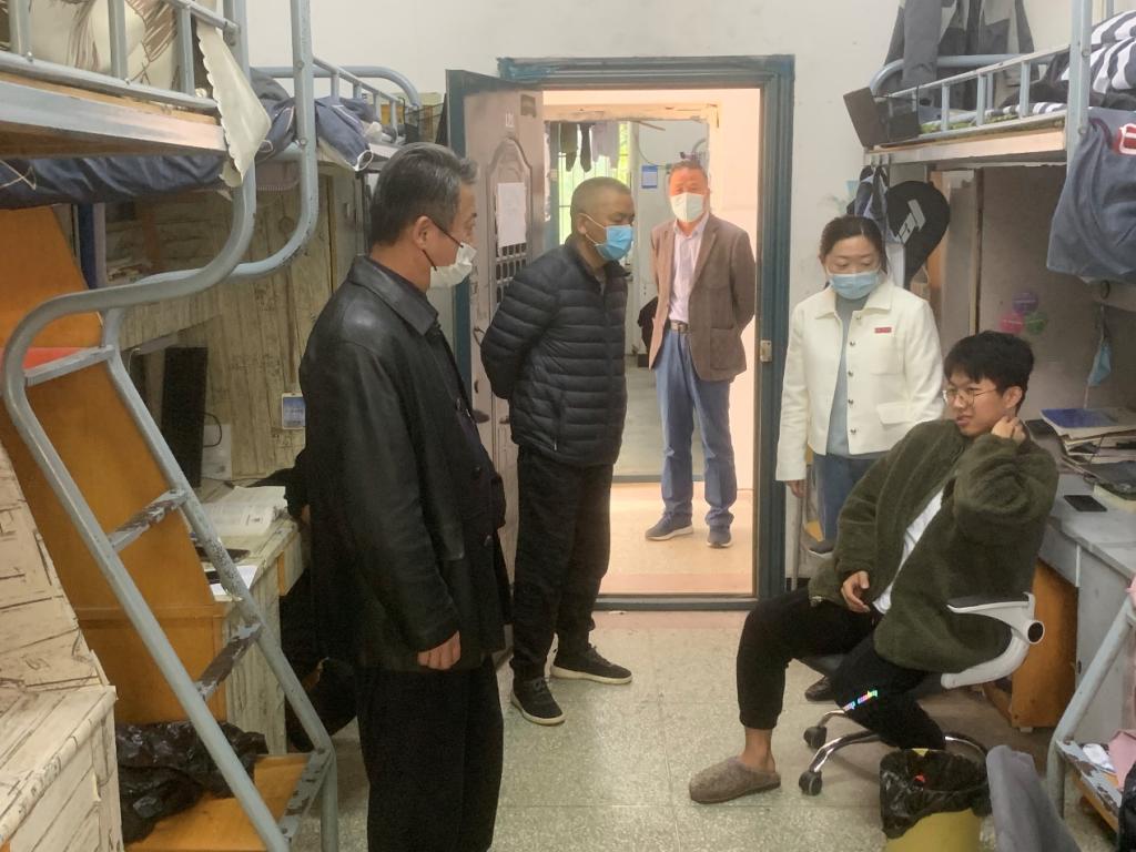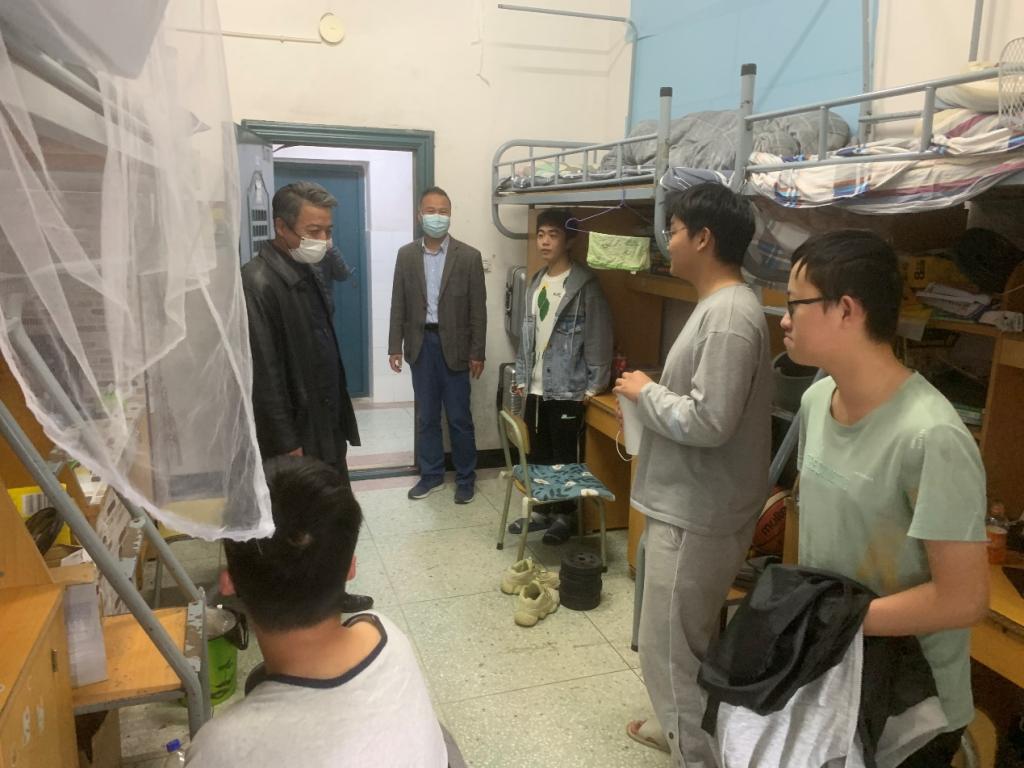 4月18日下午,副校长李明深入10栋电气工程学院学生宿舍,检查学生学习情况及疫情防控下生活情况。学院班子成员、辅导员等一行陪同。