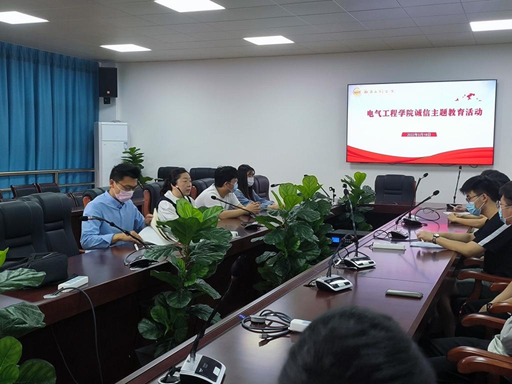 为了做好2022届毕业生助学贷款还款工作,强化学生诚信还款意识。电气工程学院于2022年5月18日上午在电气楼C405开展诚信主题教育活动。学院学生工作负责人、辅导员、毕业班贷款学生等参加活动。
