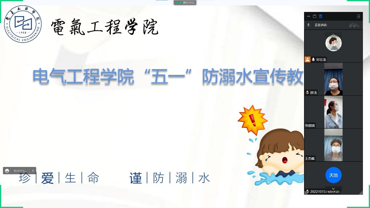 为了扎实有效的开展防溺水安全教育工作。4月27日,电气工程学院通过线上和线下相结合的方式开展了“五一节”防溺水安全宣传教育动员会,全体辅导员、各班级团支书及相关负责人50余人参加会议。