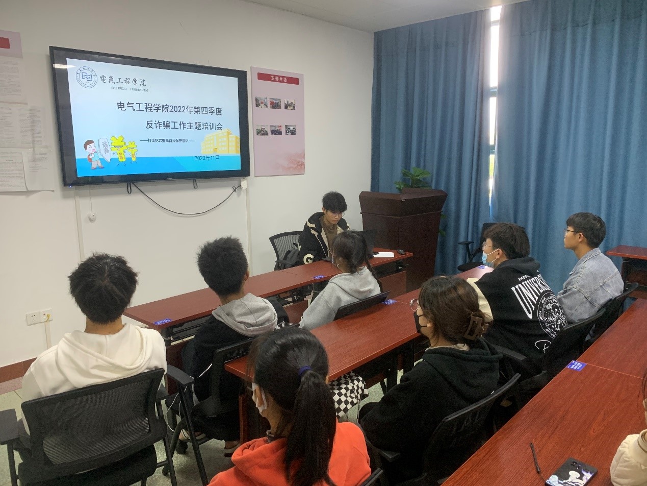 11月23日,电气工程学院于电气楼402会议室召开2022年第四季度“反诈防骗”专题培训会议,全体辅导员、各班班主任及班级反诈骨干参加了此次会议。
