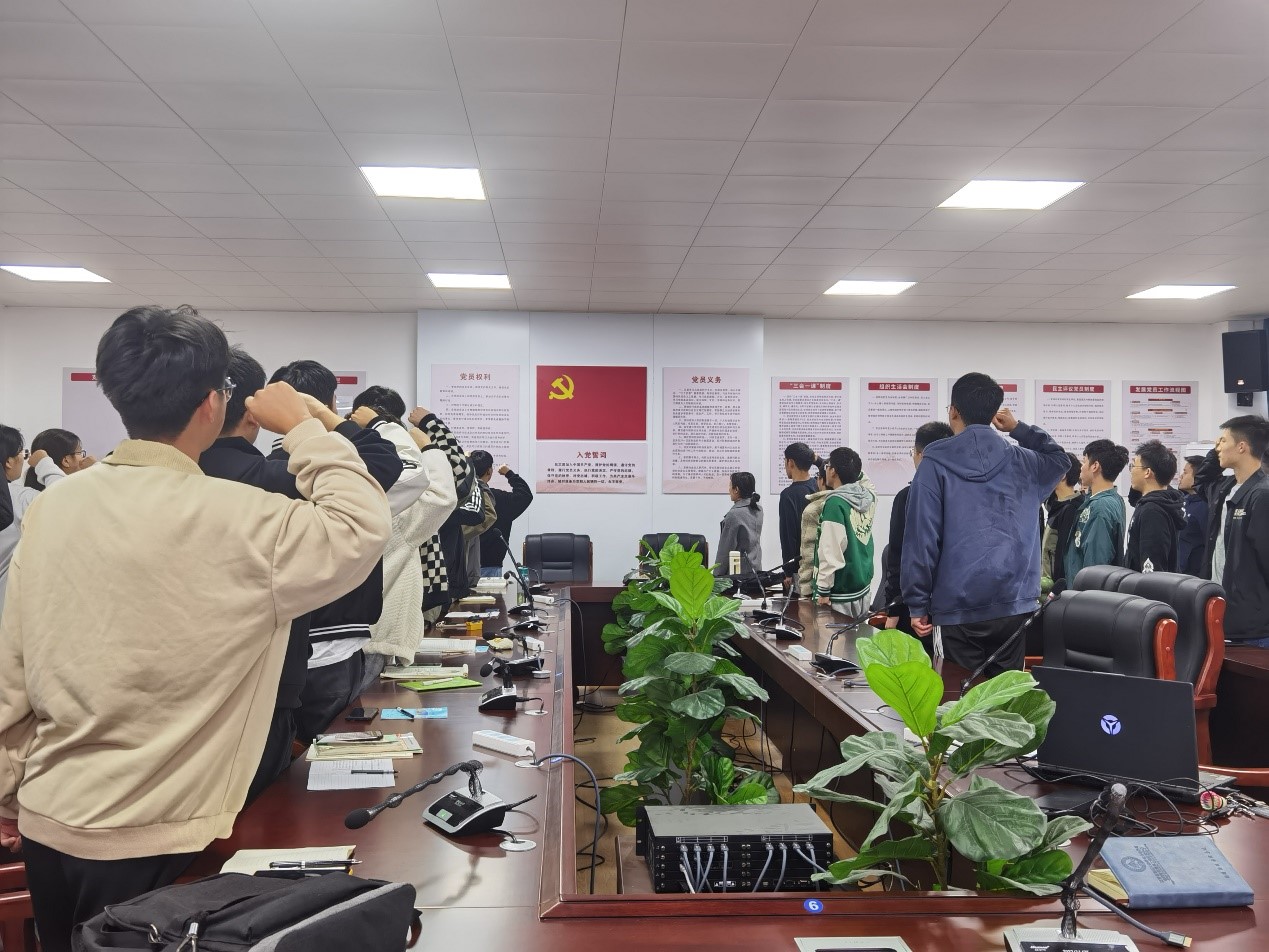微党课中,党员们和部分团员青年们集中观看了爱国主义影片《青春之歌》,回顾了“一二九”爱国运动的历史事迹,感受峥嵘岁月;大骨班学员代表深情朗读了《雪花飘进1935》,全体党员面对党旗庄严宣誓。