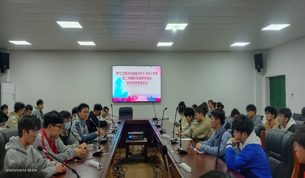 3月13日,电气工程学院团委在电气楼303会议室召开2022-2023学年第二学期联系指导学生会、学生社团专题会议。学院团委负责人付博、辅导员涂怀谋、学生会全体负责同学、院青年志愿者协会负责人。第二届大学生骨干培训班部分学员参加本次会议。