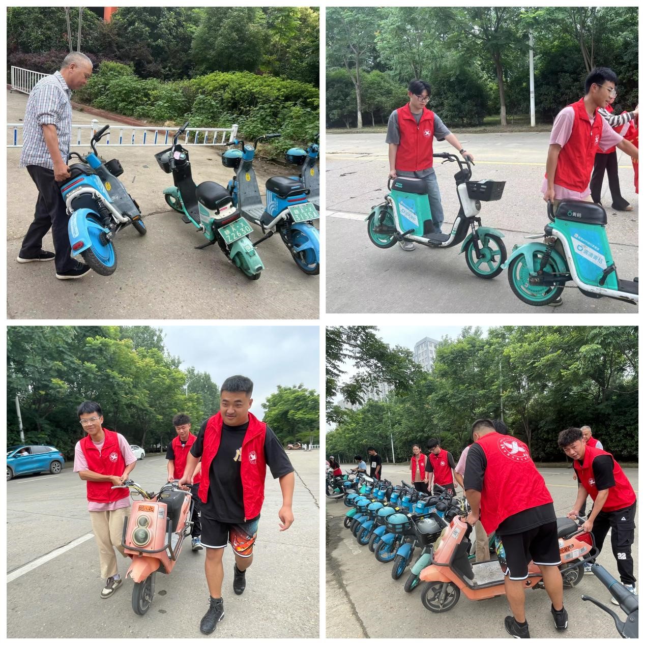 为缓解校园周边共享单车杂乱停放的问题,6月6日,电气工程学院组织师生党员前往校园周边主干道,开展共享单车整理志愿服务活动。