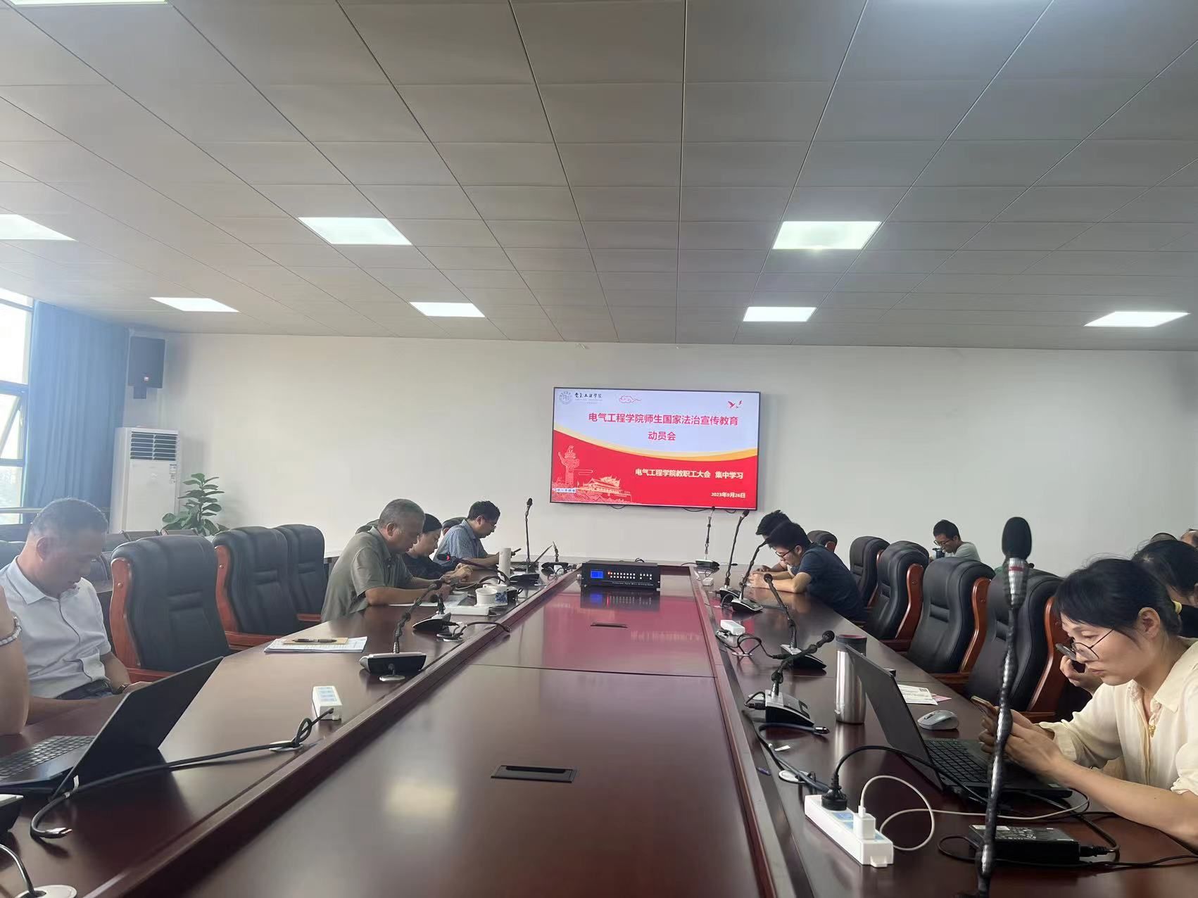 9月26日,电气工程学院举办“国家法制宣传教育”宣传教育活动。这次活动的主题是“弘扬法治精神,促进社会和谐”。全院教师和部分学生代表参加活动。