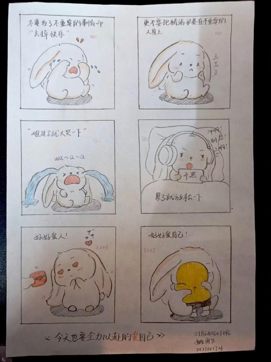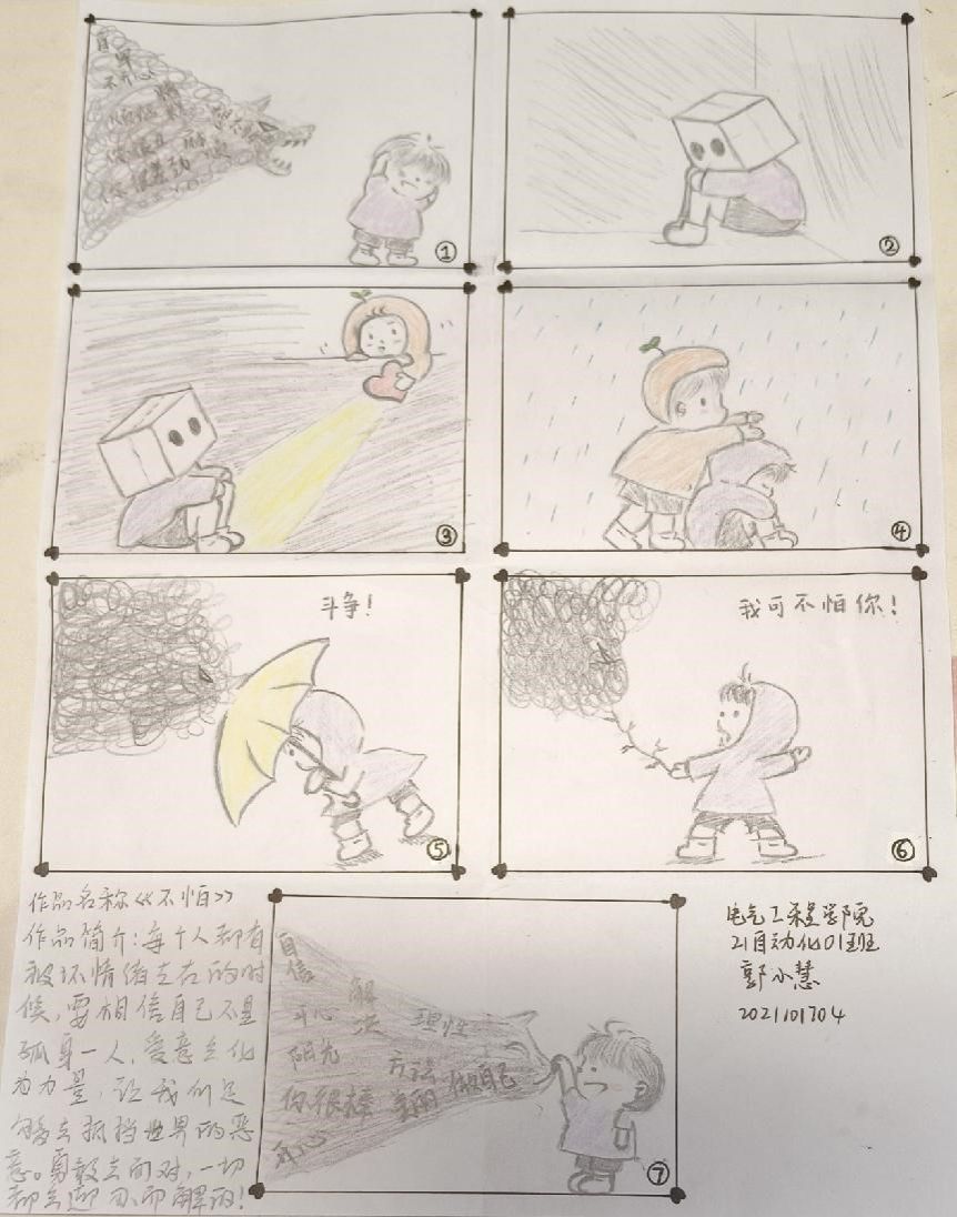 “心理漫画”大赛是通过漫画作品将心理健康意识和心理健康水平以形象生动的艺术形式展示出来,从漫画作品的含义中体验到心灵健康的美,从而达到普及心理健康知识,促进我校大学生进行自我心理教育。