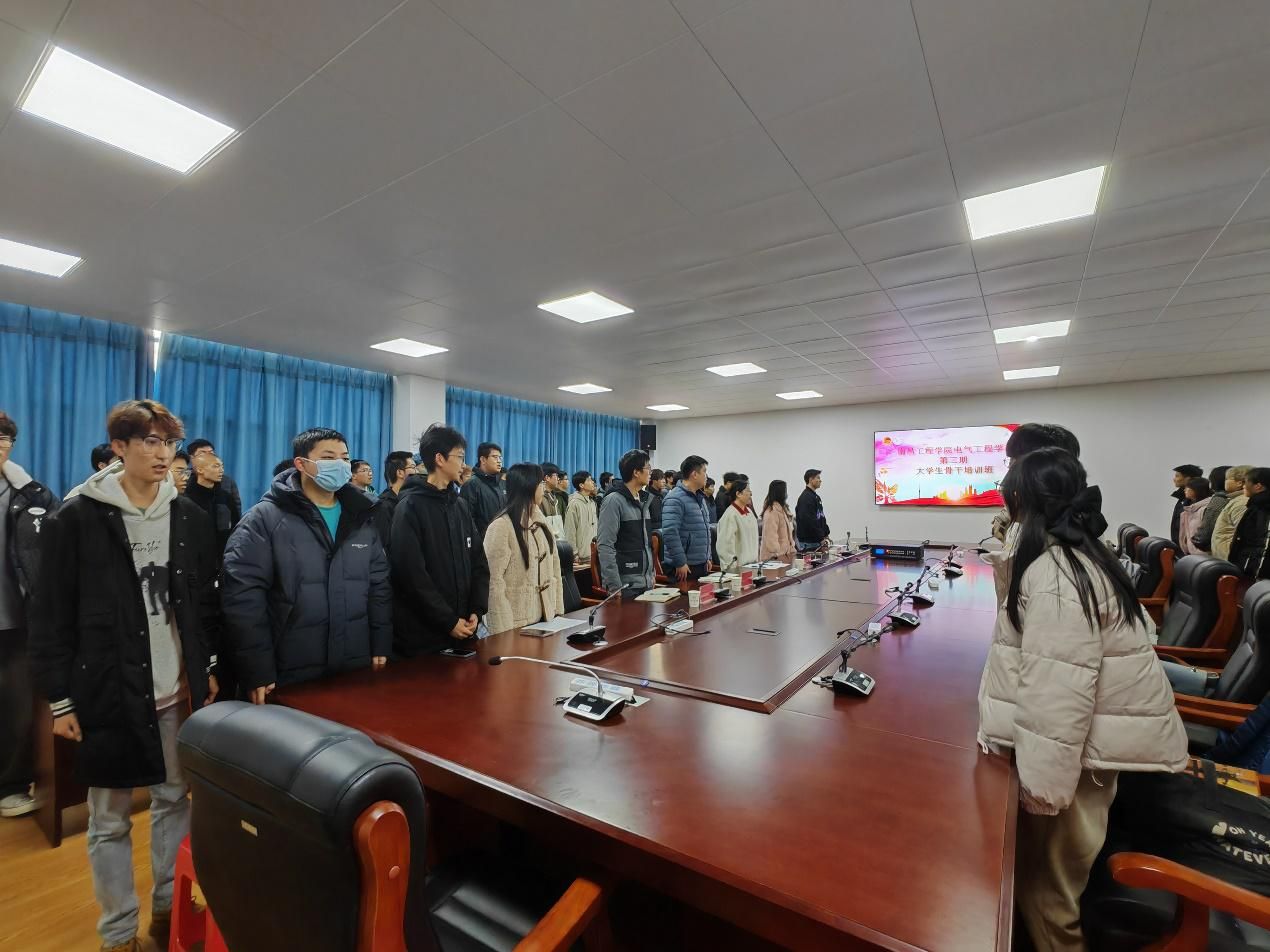 开班仪式在庄的严国歌声中拉开序幕。仪式上,宣读了《关于表彰电气工程学院第二期骨干培训班优秀学员的决定》,来自21能源与动力工01班团支部的胡添睿和22电气工程及其自动化04班团支部的孙天池两位学生骨干分别代表新老学员进行发言。学院团委负责人付博向第二期“大学生骨干培训班”优秀学员颁发荣誉证书。