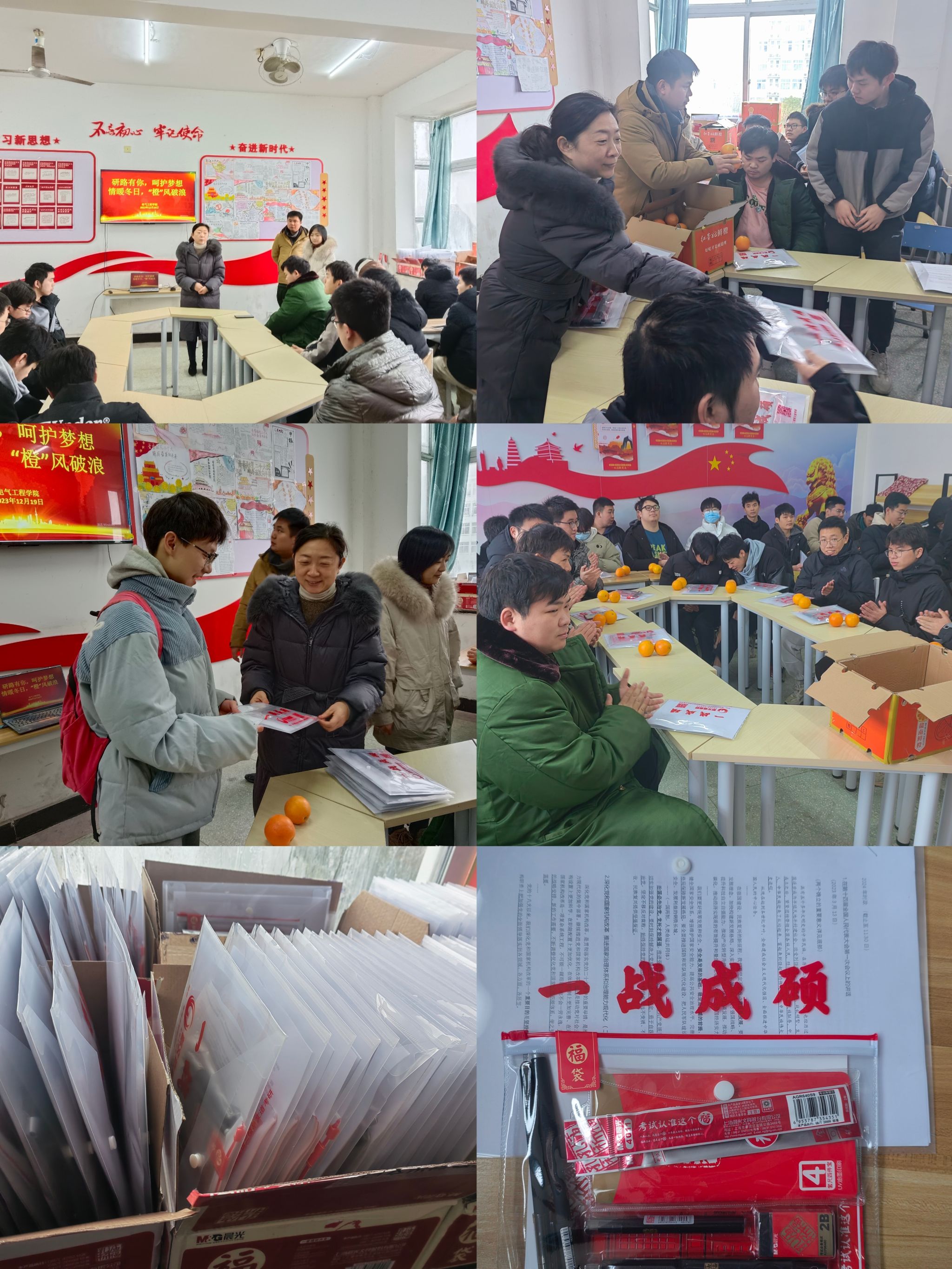 最后,领导老师们代表学院将精心准备的“考研加油包”发放到每一位考研学子的手中,橙子寓意“心想事成”,祈福文具寓意“金榜题名”。同学们倍感温暖,纷纷表示,一定会努力复习、积极准备、全力以赴,用最好的状态迎接即将到来的考试,不辜负老师们的期望。