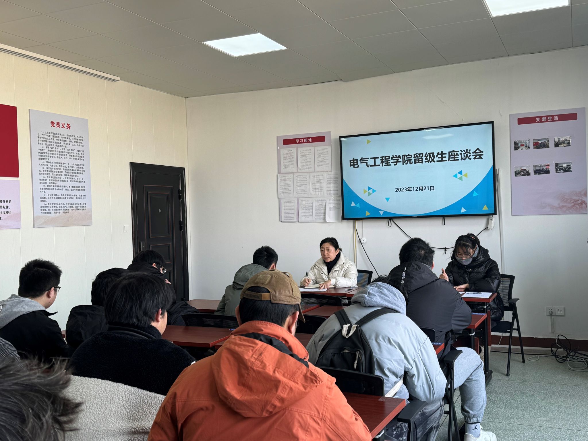 12月21日中午,学院在电气楼C402召开留级生座谈会。学院党委副书记唐玉娟、学院教务处张兰兰老师以及辅导员代表出席此次座谈会。参加会议的留级生16名,唐玉娟书记主持会议。