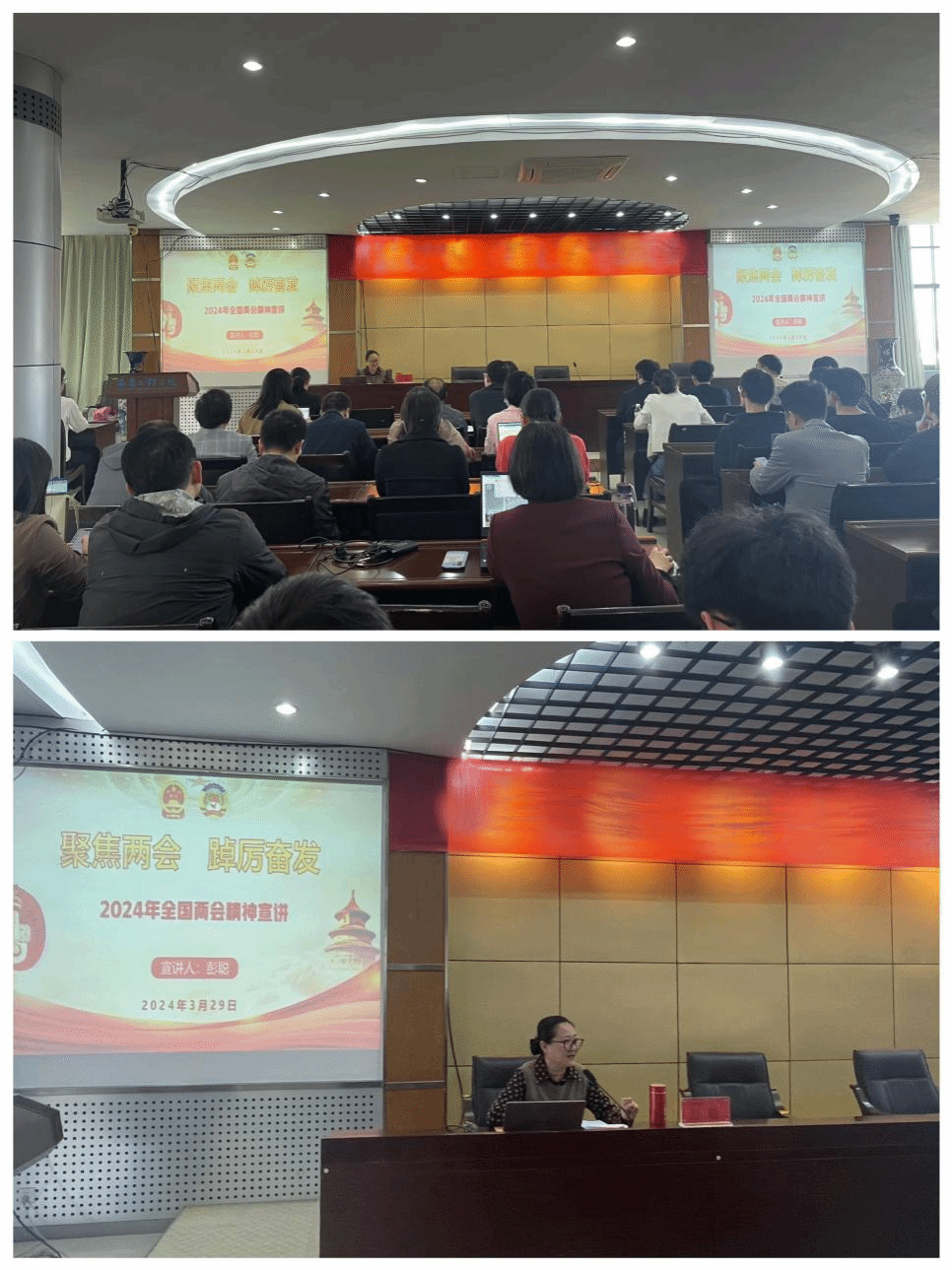 3月29日下午,全国人大代表、教师发展与服务中心主任彭聪在电气工程学院宣讲全国两会精神,学院全体教师、部分学生党员和积极分子共计90余人参加,会议由学院党委书记焦晶主持。