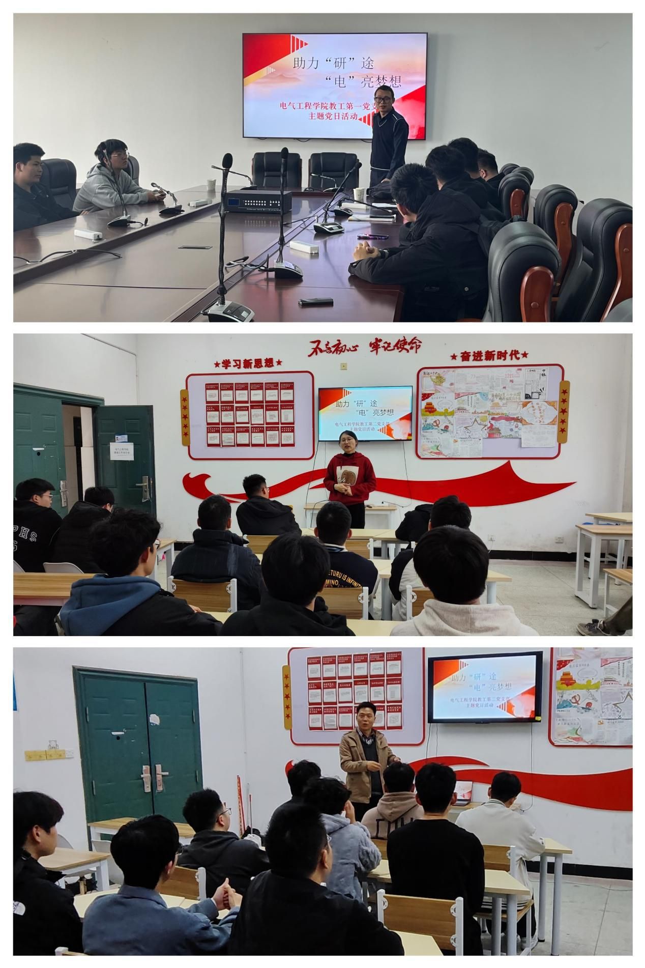 为进一步强化党建引领,帮助学生更加高效地准备研究生复试,3月22日,电气工程学院各教工党支部开展了“助力‘研’途,‘电’亮梦想”主题党日活动。