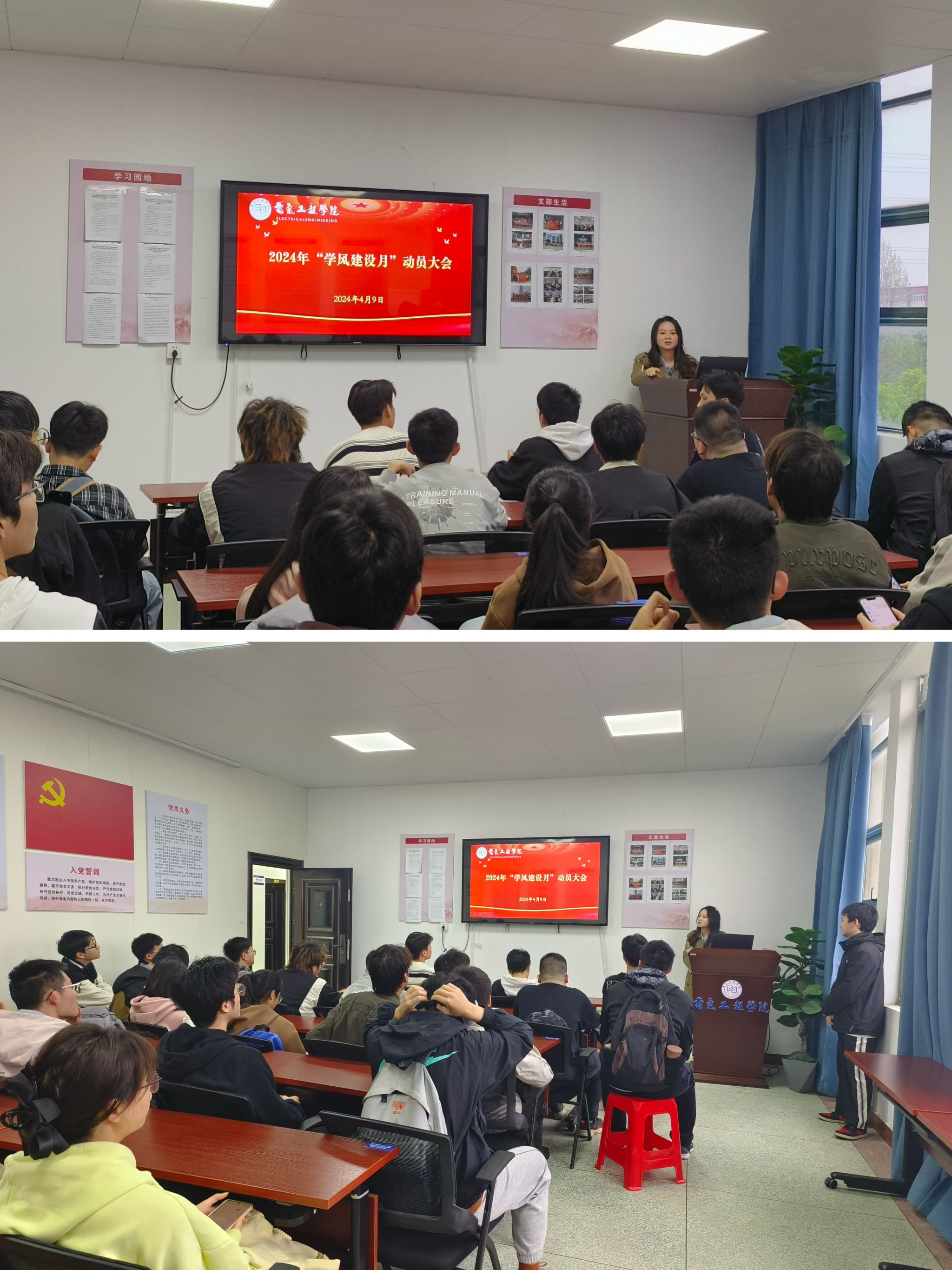 会上辅导员以“勤学笃行树学风,砥砺奋进勇争先”为主题发表动员大会致辞,她强调了学风是学生思想道德品质、学习精神与综合素质的重要体现,抓学风建设首先要统一思想,提高认识,深刻领会,希望同学们认清形势,明确自身角色,加强自我监督,向榜样们学习,养成良好的学习和生活习惯,向榜样们学习,进一步加强校风、学风建设。同时通过开展系列富有成效的学习活动,树立一批学习标兵和典型,发挥示范引领作用,发挥团学组织的作用,助力学风建设。全体学生要自觉成为学风建设的践行者、带头者,认真上课,按时上下课不迟到,不旷课,努力成为文明教室,文明宿舍,文明校园建设的主力军,把干部本色露出来,把干部的形象树起来,持续带头推动学院学风建设再上新台阶。(文/郑娟娟 图/刘逸超)