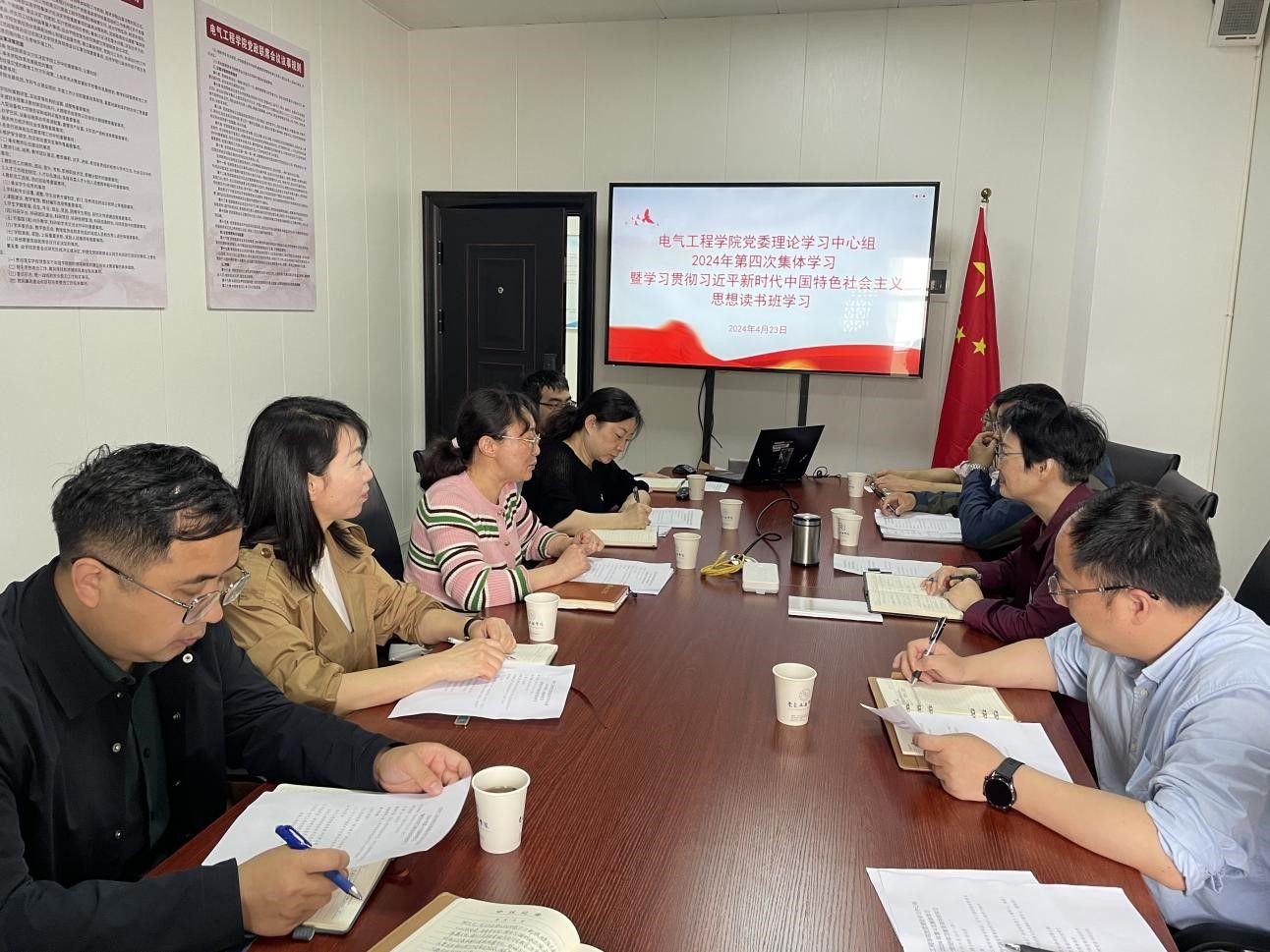 为进一步加强学院党委理论学习中心组的思想政治建设,提高党员干部的政治素养和理论水平,4月23日上午,我院在电气楼C409开展了党委理论学习中心组2024年第四次集体学习暨学习贯彻习近平新时代中国特色社会主义思想读书班学习。电气工程学院党委委员参加,信息工程学院党委委员列席会议。