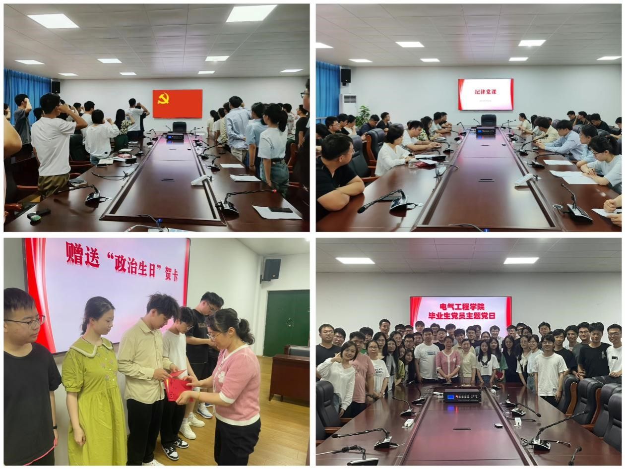 为深入推进党纪学习教育,进一步强化毕业生党员身份意识、廉洁意识和服务意识,引导党员践行初心使命,严守党规党纪。5月24日,电气工程学院在毕业生党员中开展“牢记政治生日,践行党的宗旨”主题党日活动。学院党委书记焦晶、副书记唐玉娟、各学生党支部书记参加了本次活动。