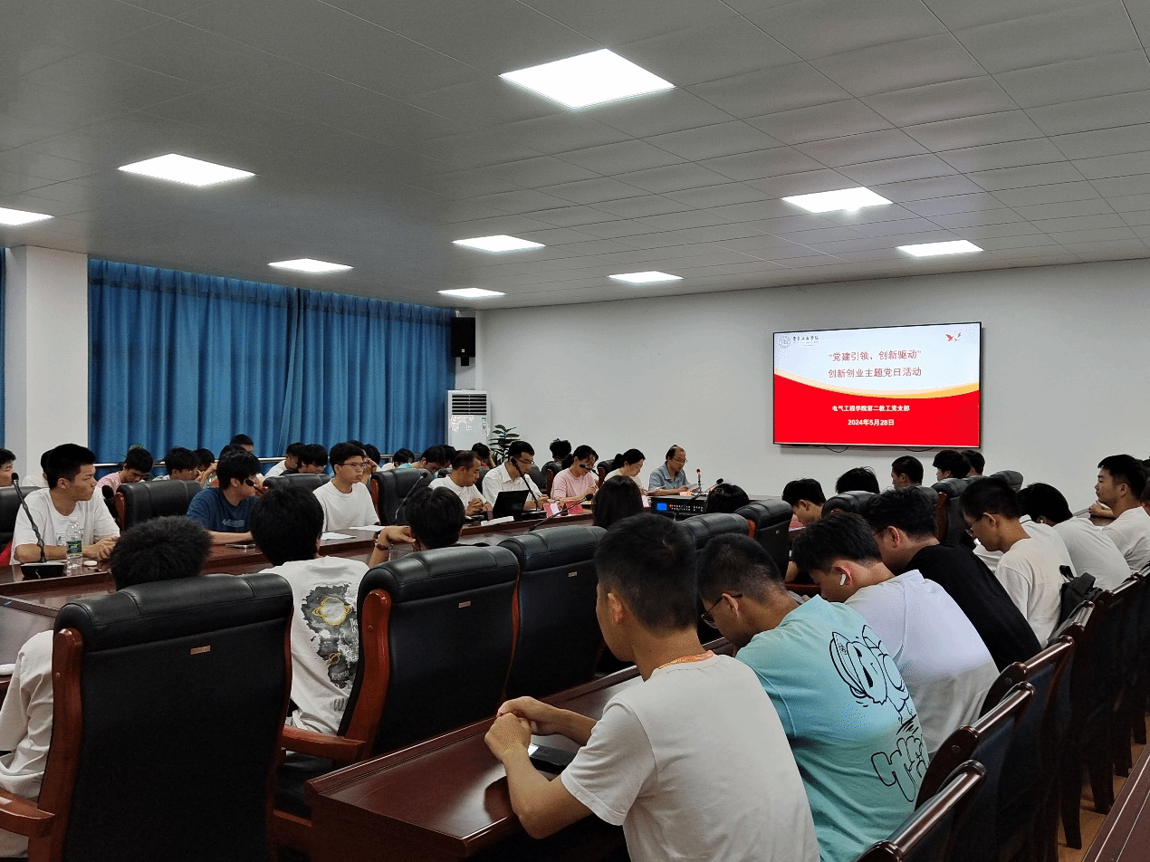 2024年5月28日,电气工程学院第二教工支部在电气楼C303成功举办以“党建引领,创新驱动”为主题的创新创业主题党日活动。此次活动旨在深入贯彻落实党的二十大精神,强化学生创新意识,提升创业能力,加强党建工作与创新创业教育的深度融合。学院党委书记焦晶、副书记唐玉娟、省工程研究中心专职副主任张扬出席,第二教工支部党员和22级、23级学院学生共70余人参加。