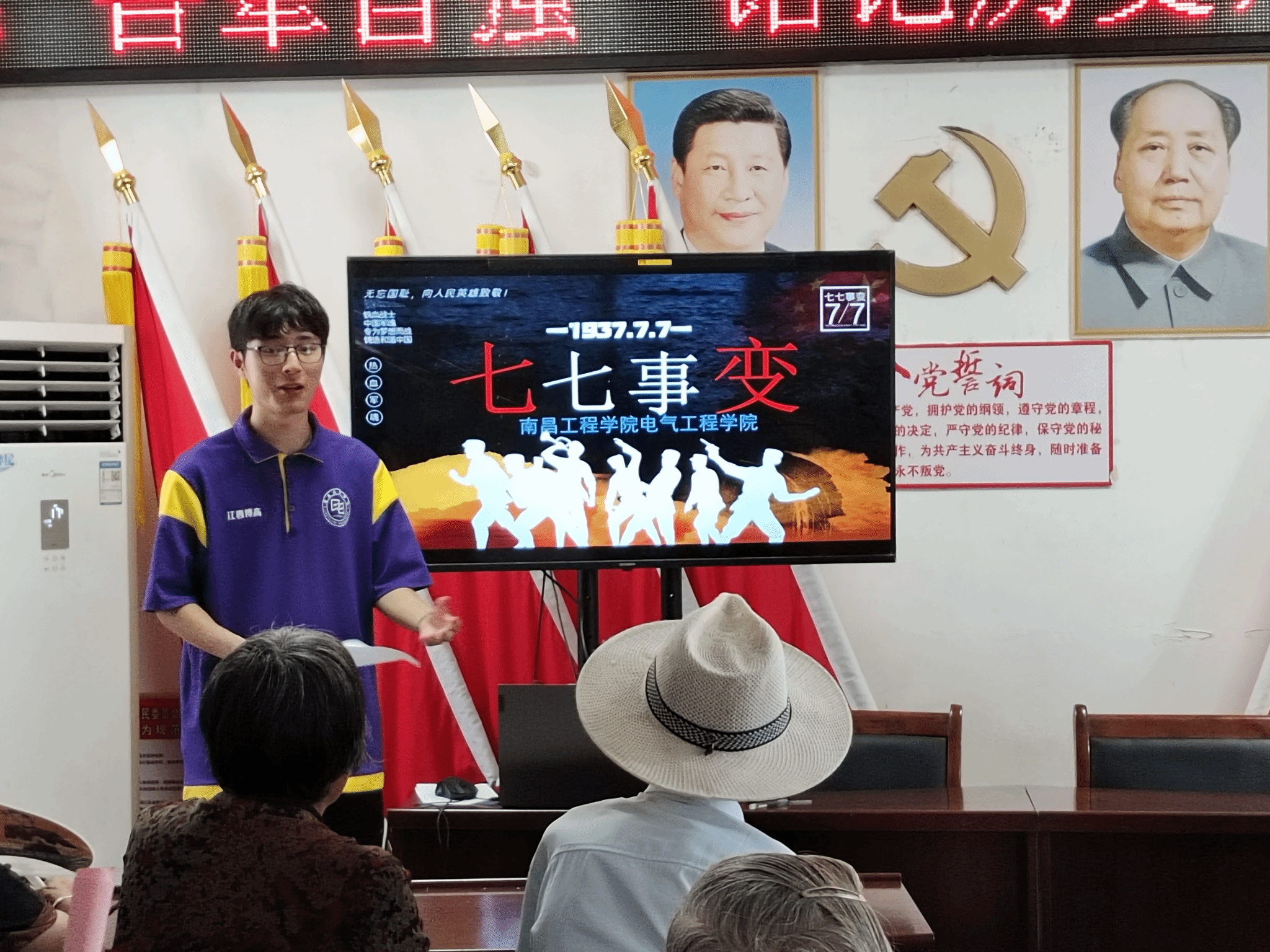 7月7日,电气工程学院“蓄电护能”暑期社会实践团联合余干县鹭鸶港乡方家洲村新时代文明实践所开展“铭记历史,吾辈自强”——纪念“七七事变”暨全民族抗战爆发87周年主题缅怀活动,实践团全体成员、方家洲村部分党员代表等二十余人参加活动。
