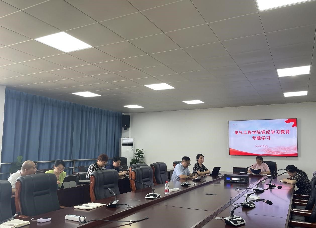 为了扎实推进党纪学习教育走深走实,7月9日,电气工程学院在B303会议室召开党员大会进行党纪学习教育专题学习,学院全体教工党员参加,会议由电气工程学院党委负责人主持。