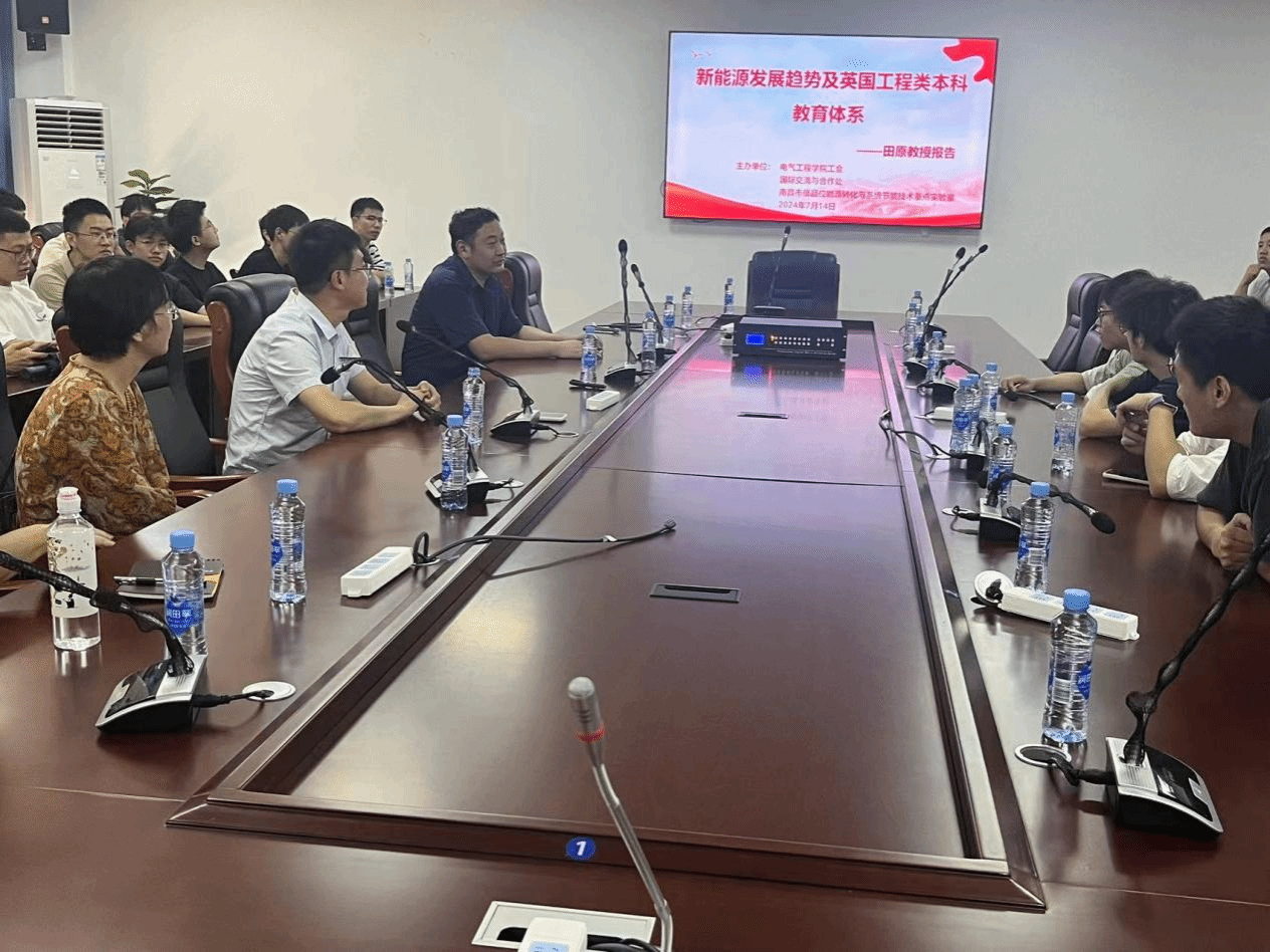 7月14日上午,校国际交流与合作处、电气工程学院工会以及南昌市低品位能源转化与系统节能技术重点实验室,联合邀请英国德蒙福特大学田原教授在电气楼B303会议室开展了“新能源发展趋势及英国工程类本科教育体系”专题讲座,副校长李培生、电气工会部分教师代表及相关专业学生代表参加了本次讲座。