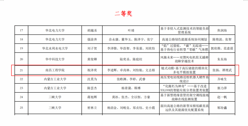 近日,“象新力杯”第三届全国大学生电力创新设计竞赛总决赛在上海电力大学(临港校区)圆满举行。经过国赛初评、网评、会议评审以及决赛等多个环节的激烈竞争,我校电气工程学院张扬、谭理武老师指导,祝泽奕、刘怡航等同学报送的作品《链式动模-基于高压储能的模块化多电平模拟装置》荣获全国二等奖。
