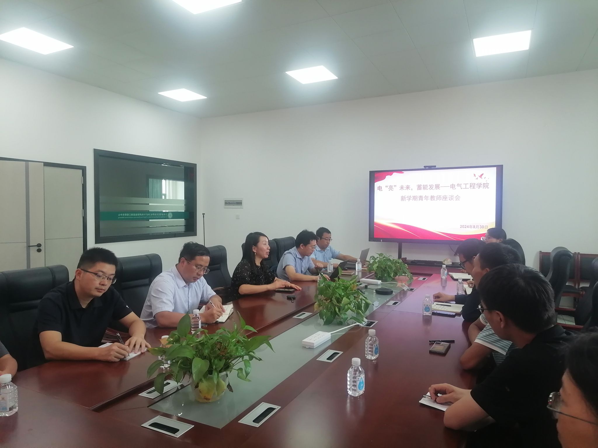 8月30日下午,电气工程学院召开“‘电’亮未来,蓄能发展”新学期青年教师座谈会。电气工程学院院长陈艳波教授、江西省大功率电力电子及电网智能量测工程研究中心主任崔明建教授、学院分管工作领导和十余名年轻博士参加了座谈。