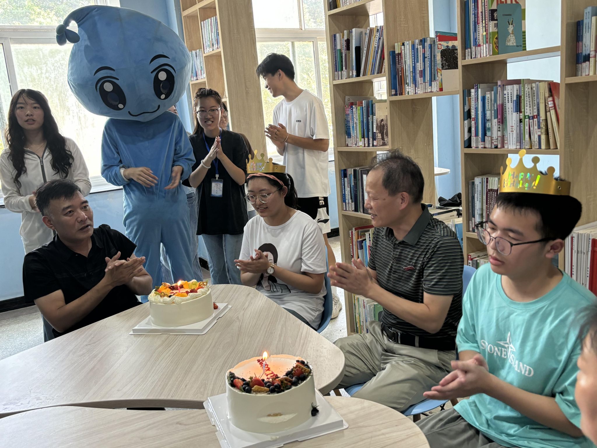 张兴旺一行还给2024级电气工程及其自动化02班袁依辰、2024级能源与动力工程03班周新豪两位新生送上生日蛋糕,过了集体生日,现场氛围十分温馨。(文/图 涂怀谋)