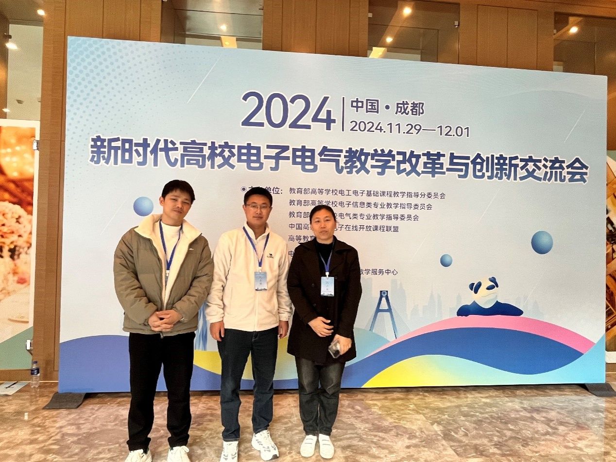 2024年11月29日至12月1日电气工程学院智能电网教研室的杨小品、丁小华、夏雪峰三位教师参加了在成都举行的“2024新时代高校电子电气教学改革与创新交流会”。会议由教育部多个指导委员会和高等教育出版社联合主办,电子科技大学承办,旨在贯彻全国教育大会精神,推动教育科技人才发展,加强拔尖创新人才培养,建设高质量教育体系。会议聚焦人才培养与课程教材建设,探讨电子电气教学改革与创新。三位教师积极参与讨论,分享经验,带回新思路,为学院教学改革注入活力。学院将继续参与此类学术交流,促进教学科研发展。(图/文 夏雪峰、杨小品、丁小华)