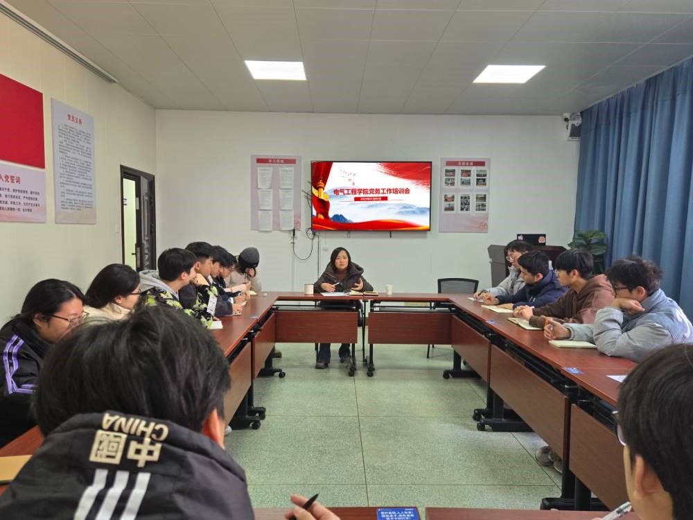 为进一步增强我院学生党务工作人员的业务能力,1月3日中午,我院于电气楼C402召开学生党务工作培训会,学院党员服务站成员以及各学生党支部委员参会,会议由学院组织员周宇主持。