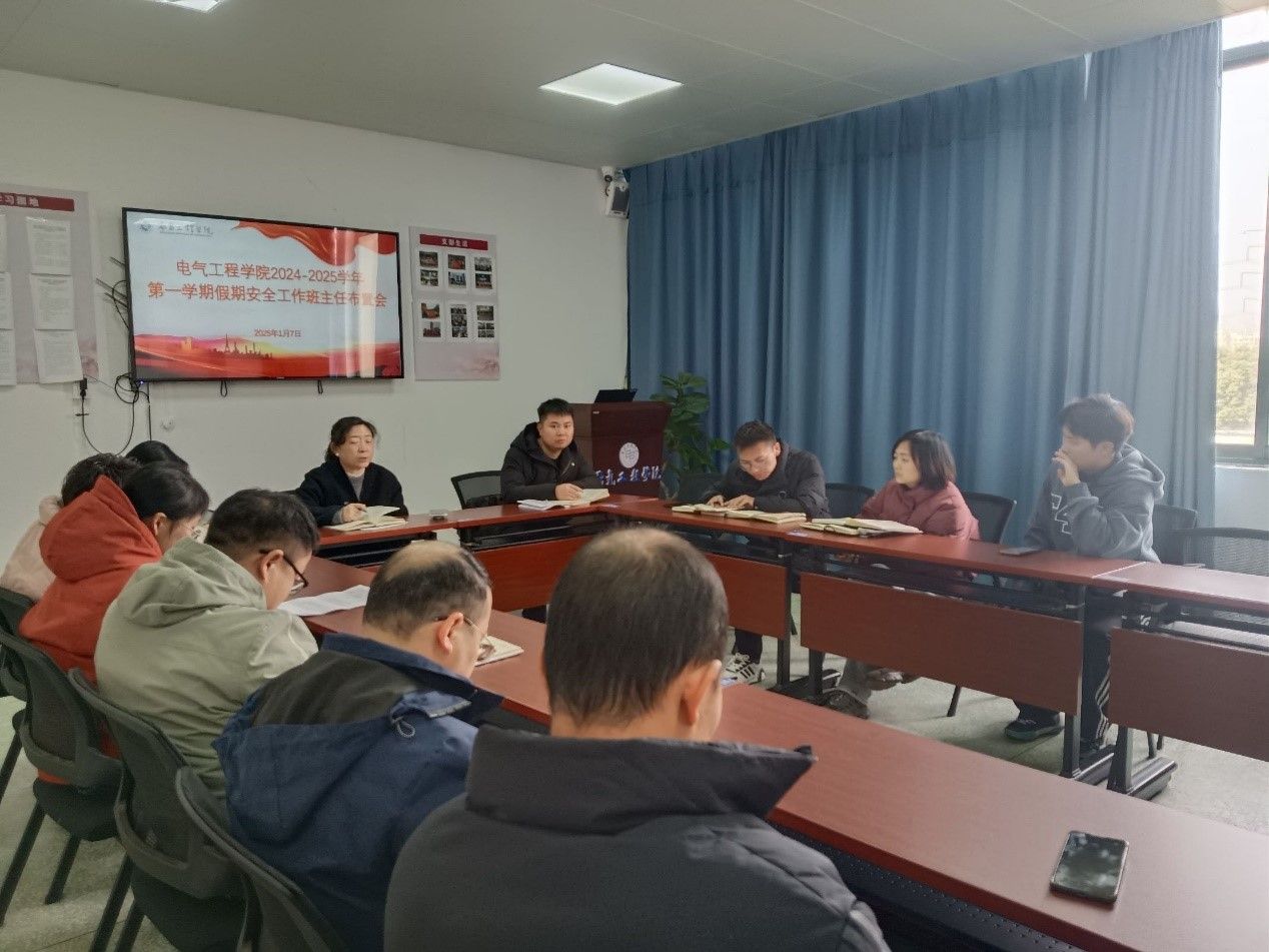 为进一步夯实假期安全稳定工作,加强学生安全教育管理,电气工程学院于1月7日在电气楼C402会议室召开班主任工作会议。学院党委副书记唐玉娟、全体班主任、辅导员参加会议。