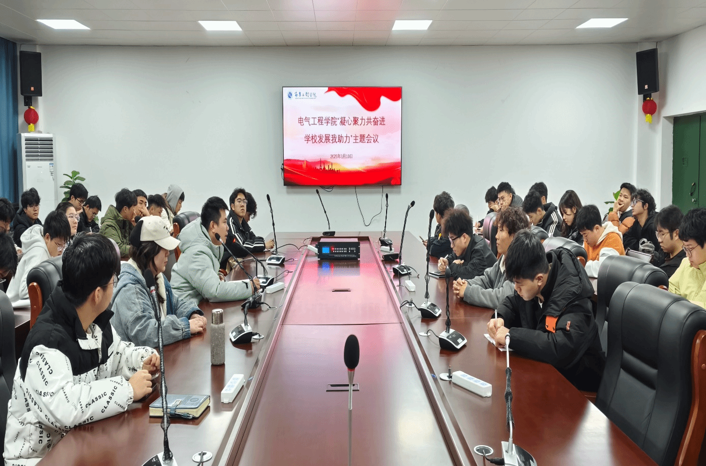 为了推进学校高质量发展,鼓励同学们彰显奋进姿态,3月10日,电气工程学院在电气楼B303召开“凝心聚力共奋进,学校发展我助力”主题会议。院团委副书记付博老师,各班级班长,团支书等班级代表参加了此次会议。