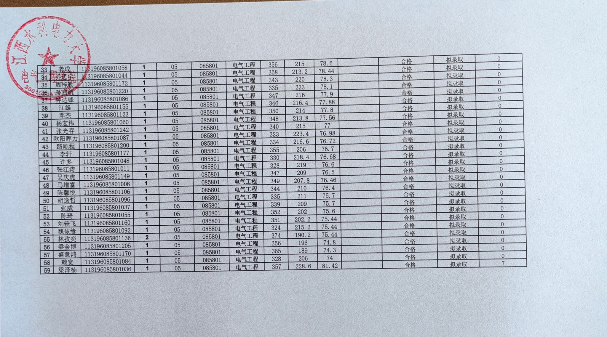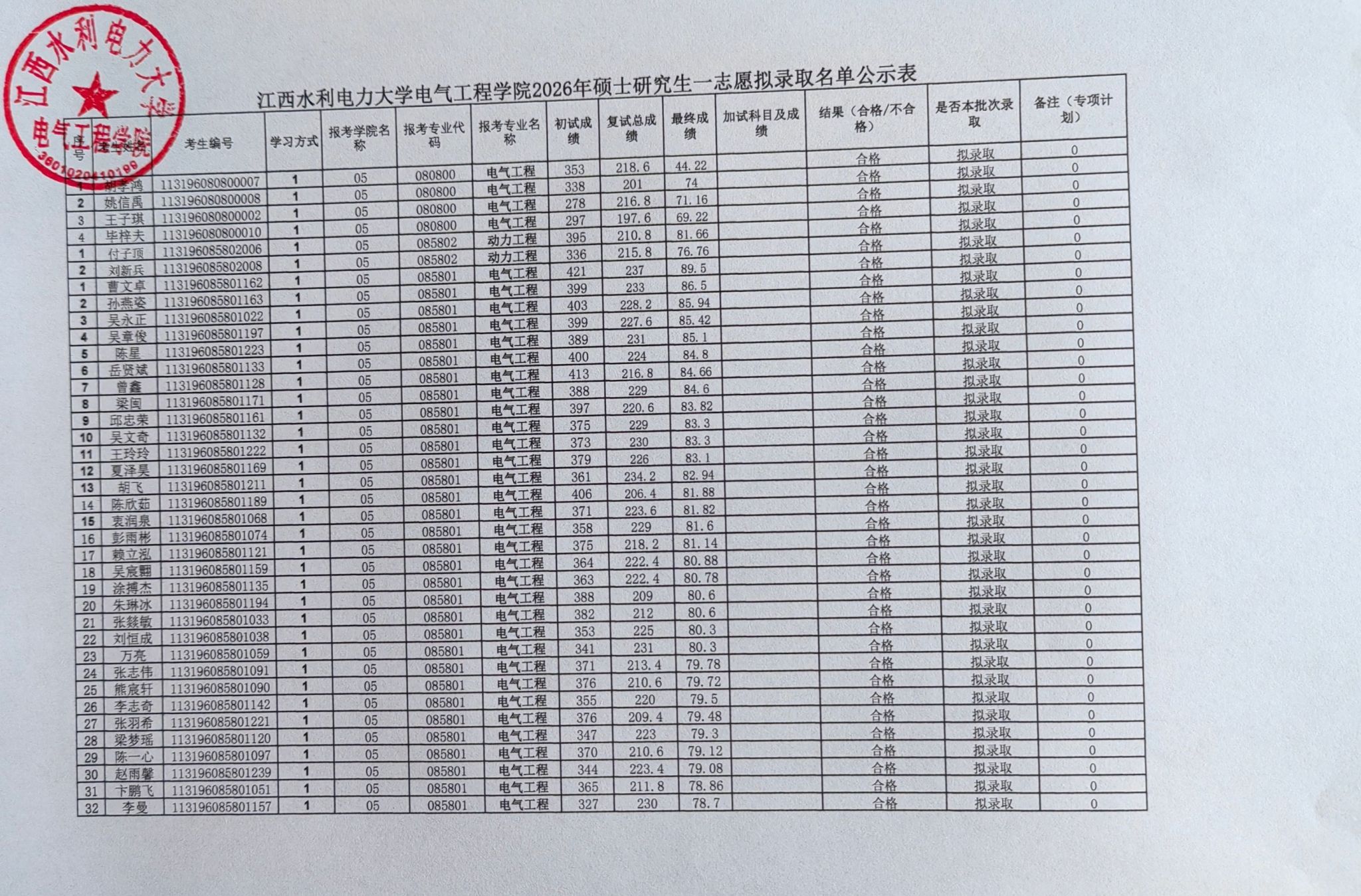 江西水利电力大学电气工程学院2026年硕士研究生一志愿拟录取名单公示表